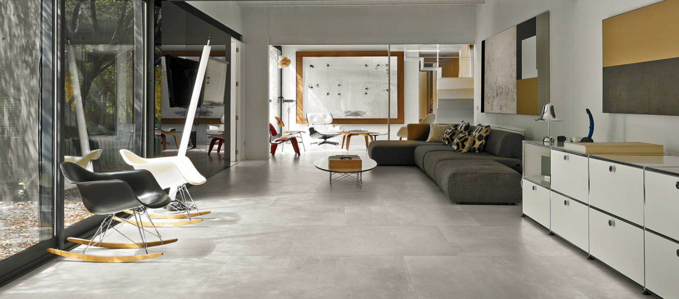 Každý výrobce hledá stále nové designy, které by zaujaly. Designy nevznikají samostatně, nezávisle na trendech architektury a vybavení interiérů. Výrobci dlaždic objíždějí význačné veletrhy, a tak jak se vyvíjí interiérový design, snaží se přizpůsobit těmto trendům své materiály. Moderní architektura stále více používala stěrky, které napodobovaly gletovaný beton. Tento způsob realizace podlah má však mnoho negativ. Nasákavost materiálu způsobuje časté znečištění podlah, které je nevratné.Beton i stěrky mají nízkou tvrdost, ve většině případů 5 stupňů Mohs. Proto jsou často podlahy poškrábány a jsou i vyšlapány cestičky, kde je větší frekvence pohybu. Nečistoty v našich zeměpisných šířkách (prach i kamínky ze žuly) mají tvrdost 7 Mohs. Slinuté dlažby mají vyšší tvrdost – 8 Mohs, a díky tomu je i ve vysoce zatíženém prostoru nedokážete poškrábat. Série Maps of Cerim si zvolila předlohu gletovaného betonu a při pokládce na minimální spáru (1 mm) a následném spárování stejnou barvou získáte fantastický design.