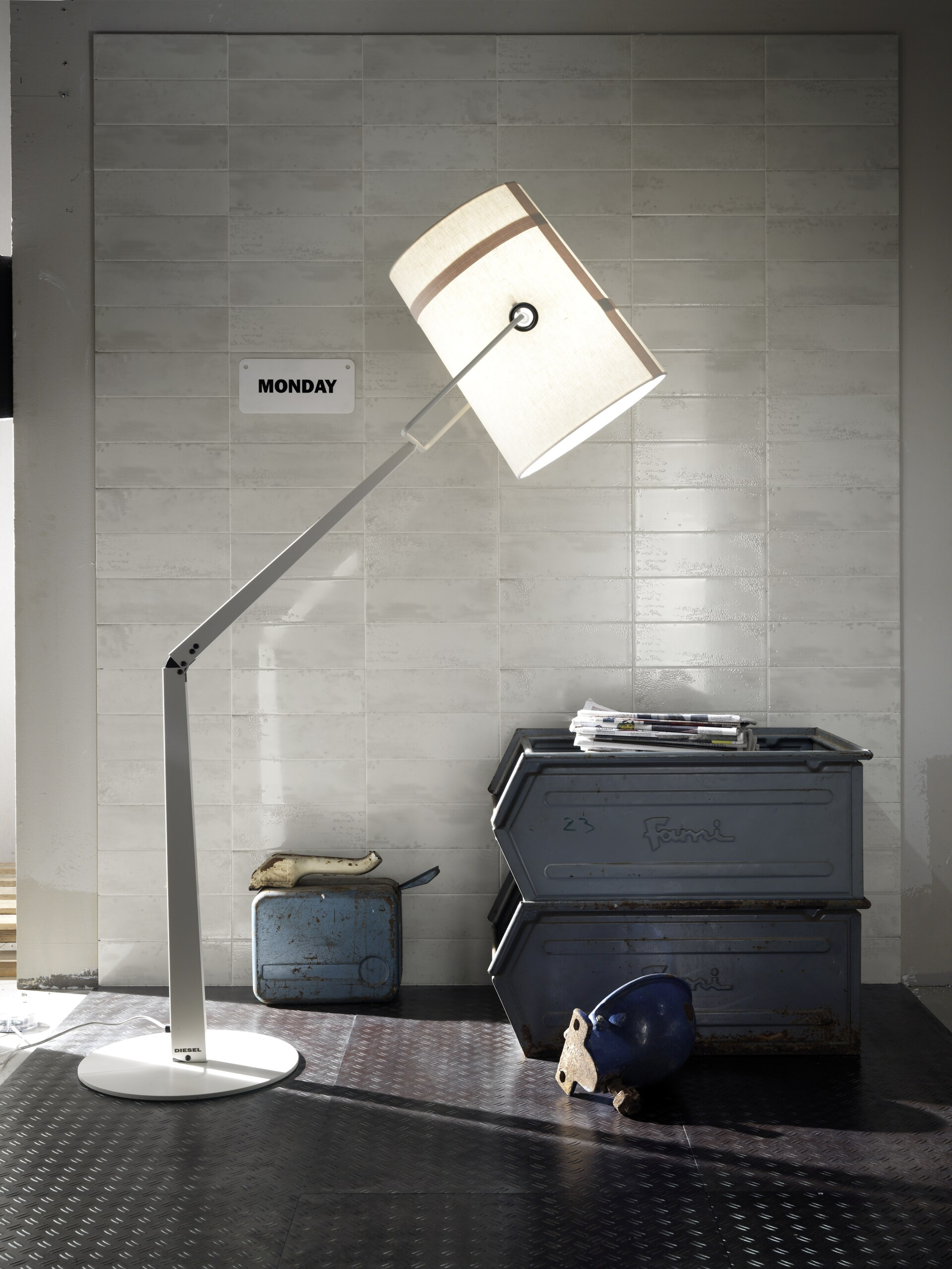 Italský výrobce Iris představil na Cersai v Bologni novinku pro rok 2017 kolekci Diesel. Tyto materiály byly navrženy do konceptu Diesel Living, který zahrnuje i sedací soupravy, potahové látky, svítidla a mnoho dalších prvků pro interiéry. Tím, že se jedná o velmi specifický design, měli architekti často problém jakou dlažbu vybrat k daným interiérovým prvkům. Nové keramické obklady a dlažby série Diesel umožňují sjednotit design celého interiéru. Série Stage vychází z předlohy ocelových plechů, které se používaly na vysoce zatížené podlahy v průmyslových podnicích. V nabídce jsou designy obkladů se skleněnou glazurou, kterým byly předlohou materiálu z 30. let minulého století, které najdete v originál katalogu výrobce.