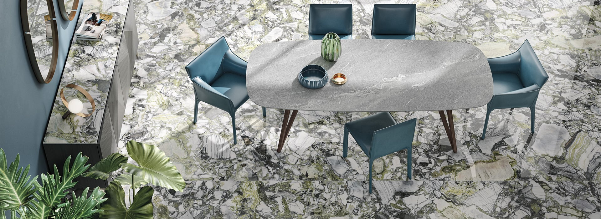 Velkoformátová reprodukce mramorů s unikátní a hlubokou kresbou přináší do prostoru nový rozměr elegance a luxusu. Díky široké variaci formátů nabízí neomezené možnosti použití jak v interiérech, tak i exteriérech. Tato umělecká technika propůjčuje prostoru noblesní atmosféru a zároveň zdůrazňuje jedinečnost mramoru. Pro interiérové využití může být materiál použit pro architektonické prvky jako jsou stěny, podlahy nebo dokonce nábytek. Při venkovních aplikacích můžeme spojovat estetiku s odolností vůči povětrnostním podmínkám. Díky svému nekonečnému použití představují mramorové designy ideální umělecký prvek pro velké projekty, jako jsou hotely, nákupní centra nebo veřejné budovy. Tímto způsobem se stávají nejen dekorativním prvkem, ale i symbolem vkusu a exkluzivity v architektuře a designu.