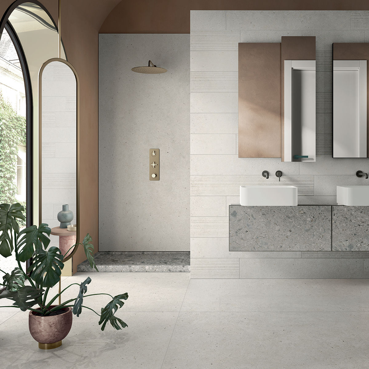 Silver Grain a Ceppo Di Gré od výrobce Italgraniti jsou jedinečné, dokonalé a nenapodobitelné materiály, které byly navržené pro soulad v kombinacích nebývalé krásy a zajišťující bezchybný design materiálů. Tím, že je dlažba dostupná v 6 mm i 20 mm, lze ji použít jak v interiéru, tak i v exteriéru. K dispozici jsou v odstínech beige, taupe, dark, grey, white a ceppo di gre - grey.