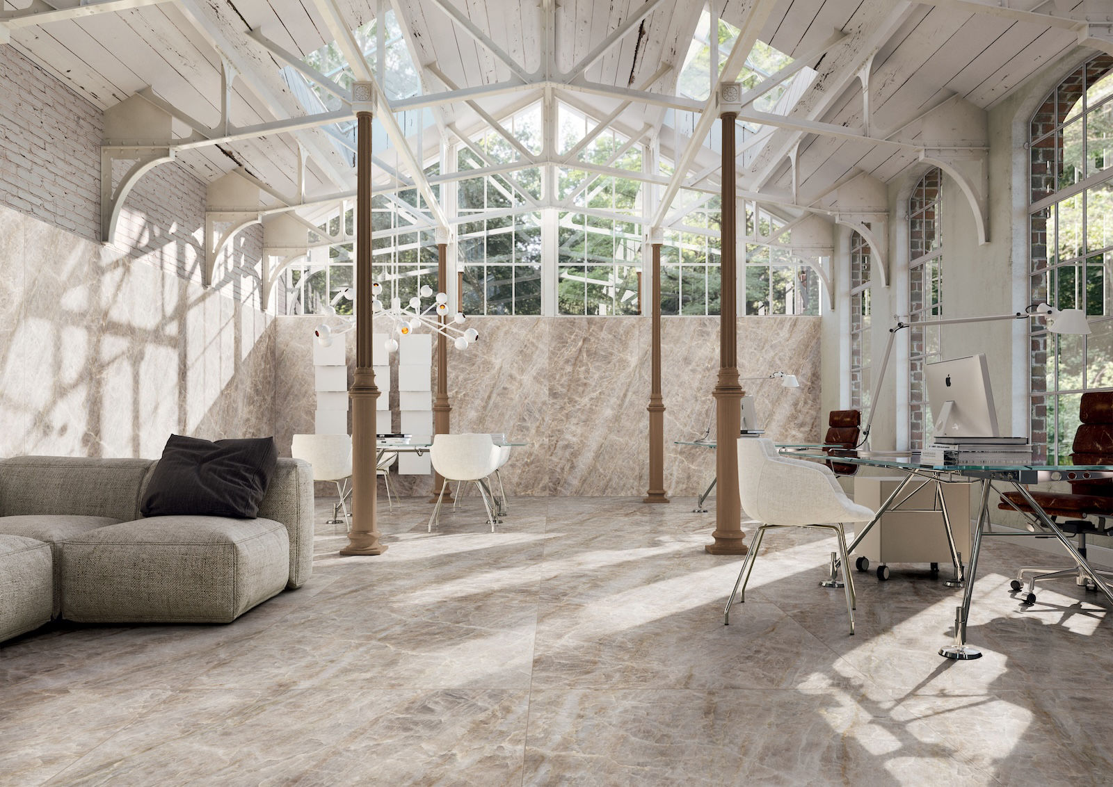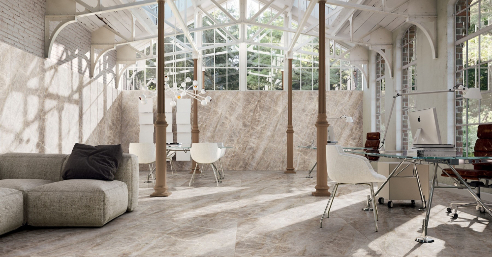 Kdo říká, že kancelář musí být nudná a šedá? Podívejte se na sérii Iconic Life od výrobce Florim, která v komerčních prostorách vypadá opravdu skvěle. Použitý design Opal Yamuna je charakteristický svou jemnou texturou a hřejivými podtóny, které v prostoru působí přirozeně, vzdušně a nadčasově.