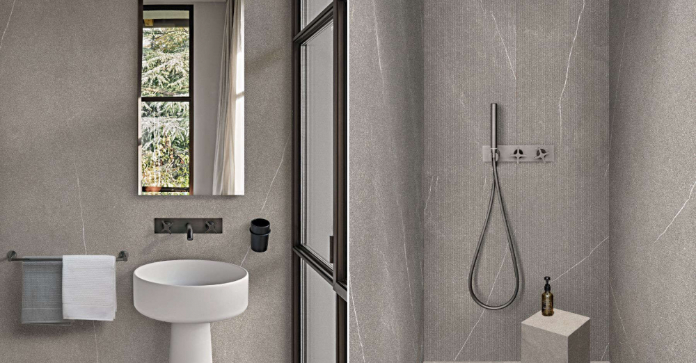 Inspirujte se sérií obkladů a dlažeb Coretech v designu technického kamene od předního italského výrobce Florim. Na přiložených obrázcích si můžete prohlédnout koupelnu, ve které se použila matná dlažba a obklad v designu brushed light a o rozměru 120x280 cm. K dostání je však i v dalších odstínech flame light, satin dark a flame dark.