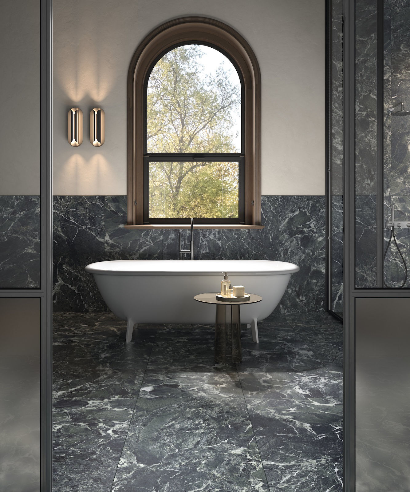 Moderní koupelna s dlažbou a obkladem Select v designu Green Aosta